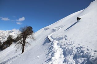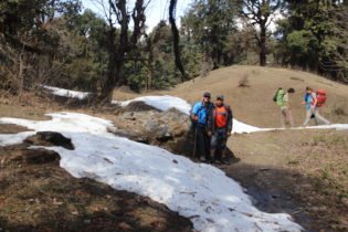 Day 2: Deoriatal to Rohini Bugyal ,meadows trek distance is 8 km long. If you are trekking in (winter) Snow Trekking the campsite can get quite windy and moisture There we can see the different type of birds . in the month of March – April we can also see the full of blooming by rhododendron flowers. Its looks so beautiful everywhere red color of the flowers. We make bonfire overnight at rohini bugyal even this trek is good for(wildlife) or bird watching (Birding) so many species of birds like hill partige.koklass pheasant.animals like stag .dear wild pig. indian jackal and many more.