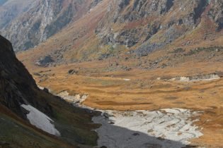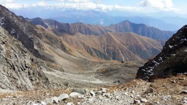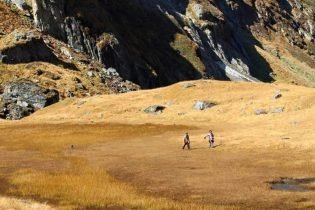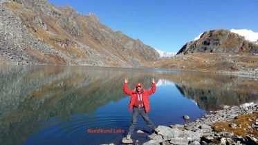 4th day Next morning we will be trekking to nandikund which is 3 km from pandav shera. Through boulder zone trek and steep walk till nandikund. We can stay there or see beauties of nadikund. Nandikund is clear crystal glacier’s water. There are we also find some weapons of history .we also went to ‘ghiya vinayak pass’ which is approximately 2.5 km from nandi kund. Ghiya Vinaya pass is on the top. Through ghiya vinaya pass we can see nanda devi Himalayas range. If we can trek forward to urgham- kalpeshwer Temple. So, it will take approximately 7-8 days. We have done this trek it is beautiful trek we can see many animals between these treks. Then evening we turn back down to our camping base pandav shera .where we stay at overnight.