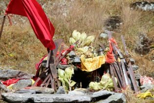 arighad. Then we reach pandav shera. Pandav shera is wide field area. There we stay for camping. This place belongs to Pandavas according to Indian mythology. There we can see weapons of pandavas. Ther we can also see the growing of paddy(rice) in the month of August. There is small canal which makes it a beautiful place.In the month of August- September we find beautiful holy flowers of ‘brahm kamal’. Which is state flower of Uttarakhand state . in the month of July-August this flower is dedicated to god Shiva.